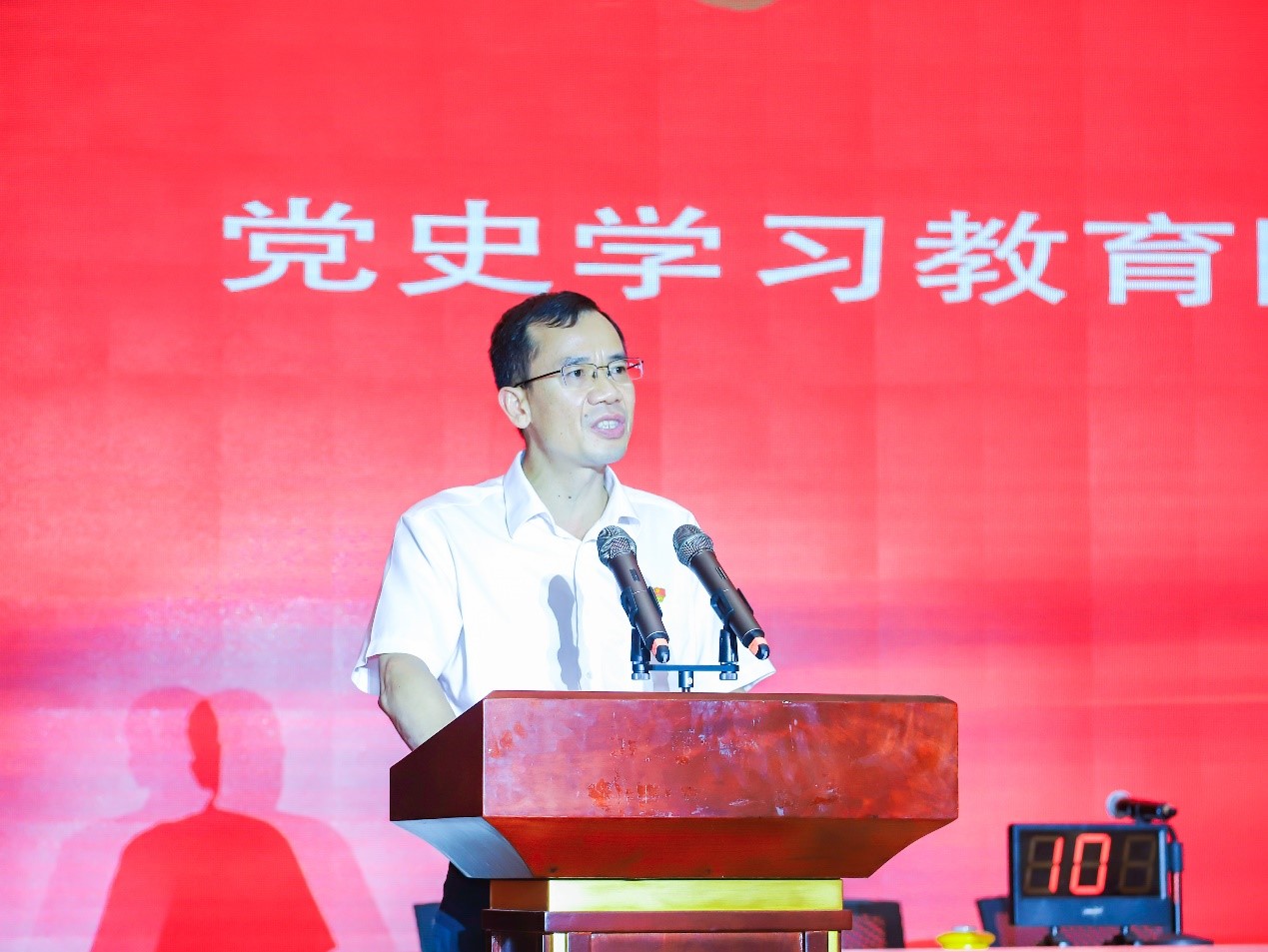 党史学习教育阶段性工作总结大会结束后,庆祝中国共产党成立100周年系列活动表彰大会(以下简称“表彰大会”)在热烈的气氛中召开,公司党委副书记、董事长李石山致开幕词。