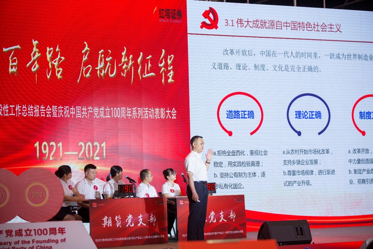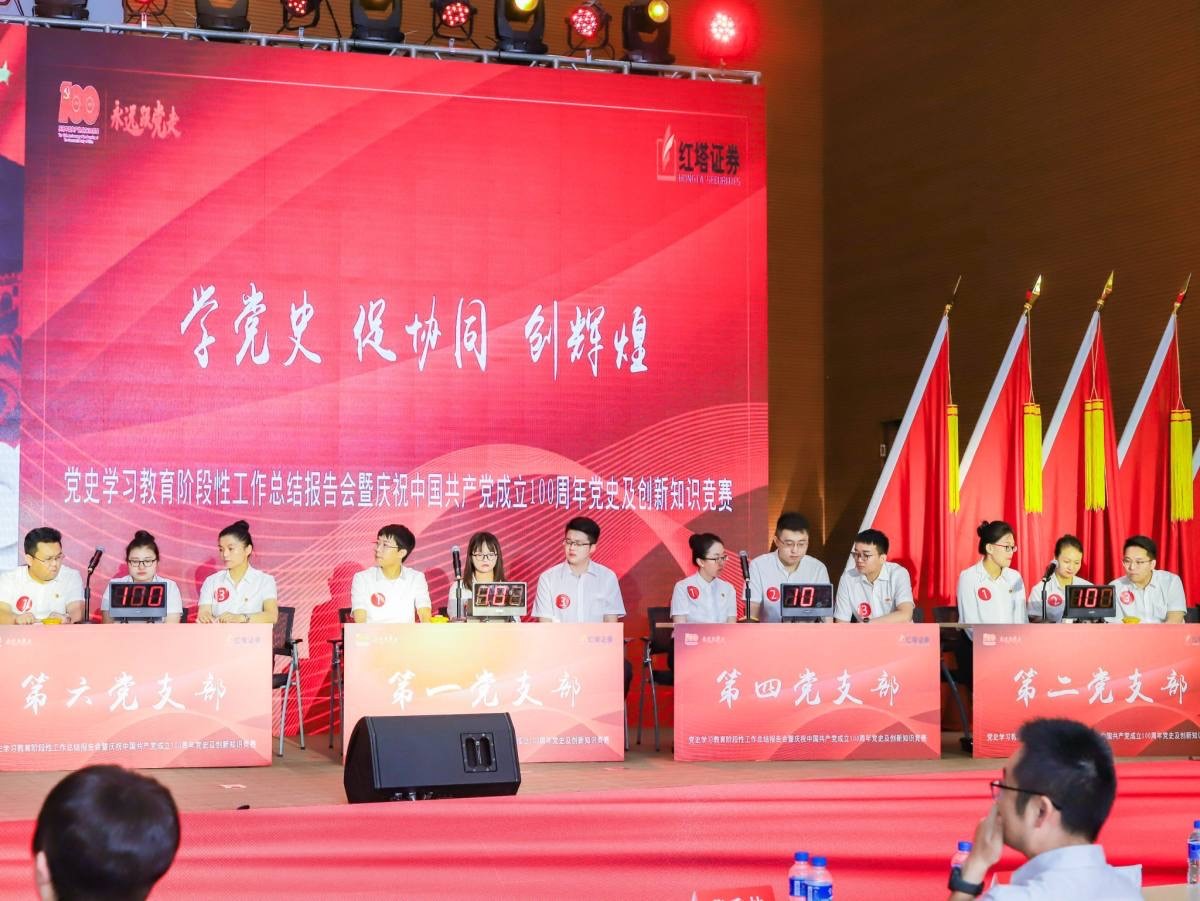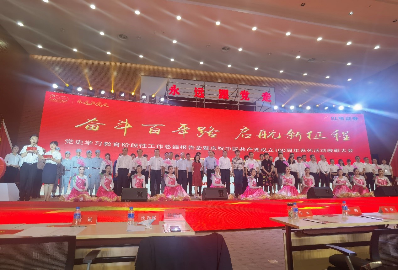 根据中共红塔证券股份有限公司委员会(以下简称“公司党委”)公司党史学习教育工作安排,结合自6月以来开展的庆祝中国共产党成立100周年系列庆祝活动,红塔证券党委7月10日下午在红塔会务中心组织召开主题为“奋斗百年路 启航新征程”的党史学习教育阶段性工作总结报告会暨庆祝中国共产党成立100周年系列活动表彰大会。
