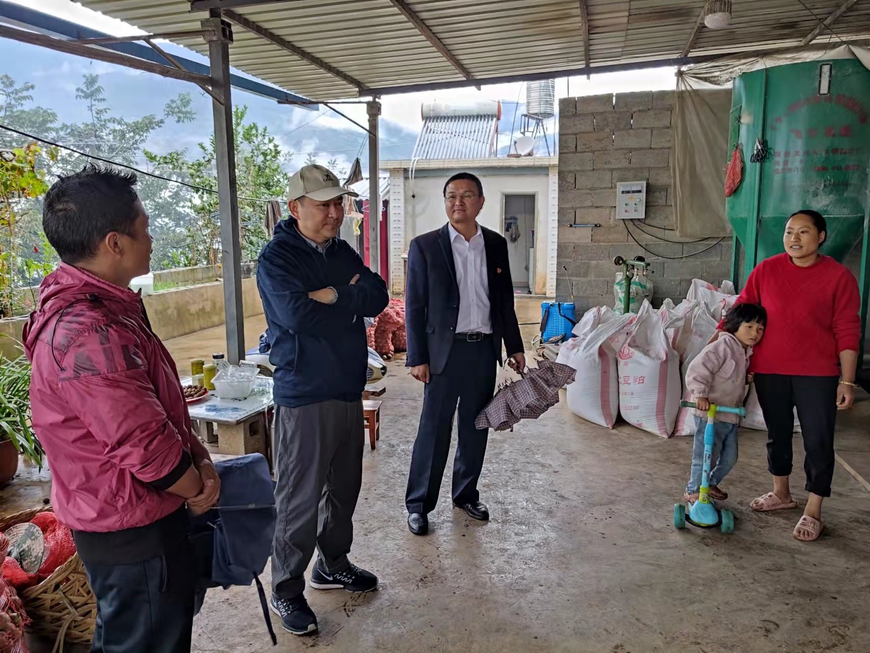 一进入清河村,景书记首先到他挂钩帮扶的建档立卡户赵金标、茶丽美家进行走访慰问,景书记不顾腰腿不适,爬坡下坎走入农户家中看望帮扶对象。原先村里最穷的赵金标现在自己在家务农,儿子外出务工,家庭有收入,生活有保障。景书记鼓励赵金标好好劳动,生活更上层楼。茶丽美家脱贫摘帽后,大力发展家庭畜牧养殖业,家里养的牛从原来的6头增加到了8头、羊有二十多只。帮扶干部们看到茶丽美家的牲畜饲料堆放成堆,景书记又嘱咐茶丽美提高养殖质量,避免遭受损失。