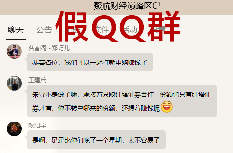 近期,红塔证券股份有限公司(以下简称“本公司”)接到投资者致电称“聚航财经”声称与本公司合作,可帮助投资者无市值打新,并诱骗投资者转账,诱骗投资者下载假冒红塔证券APP,进行非法证券活动。